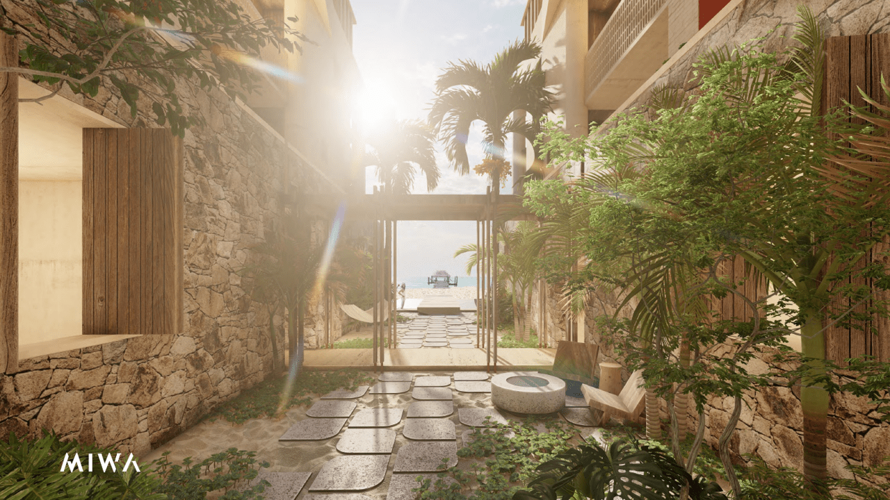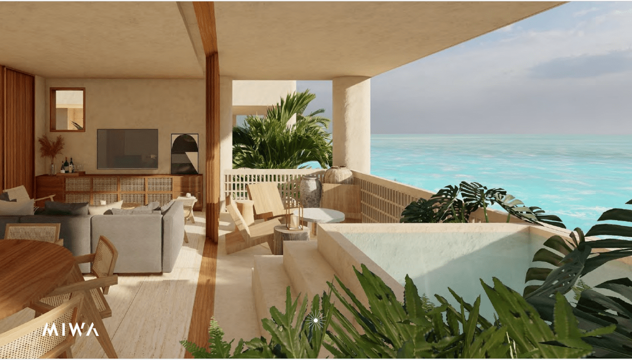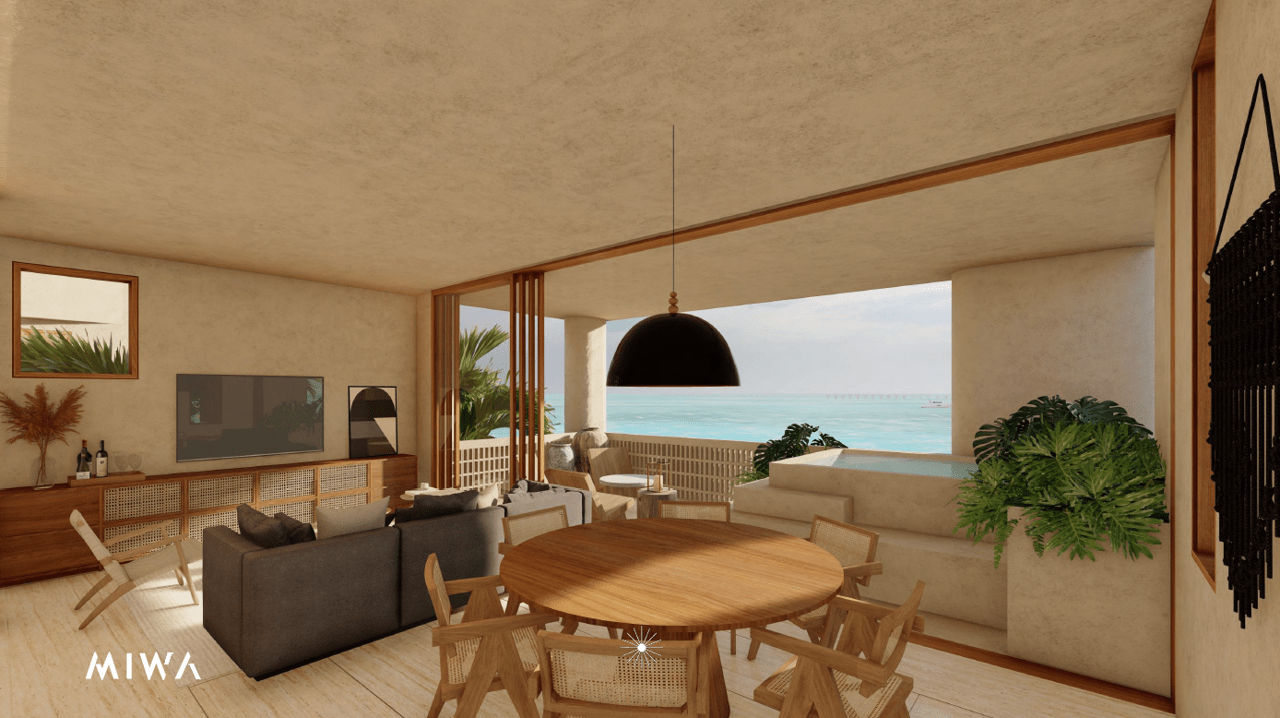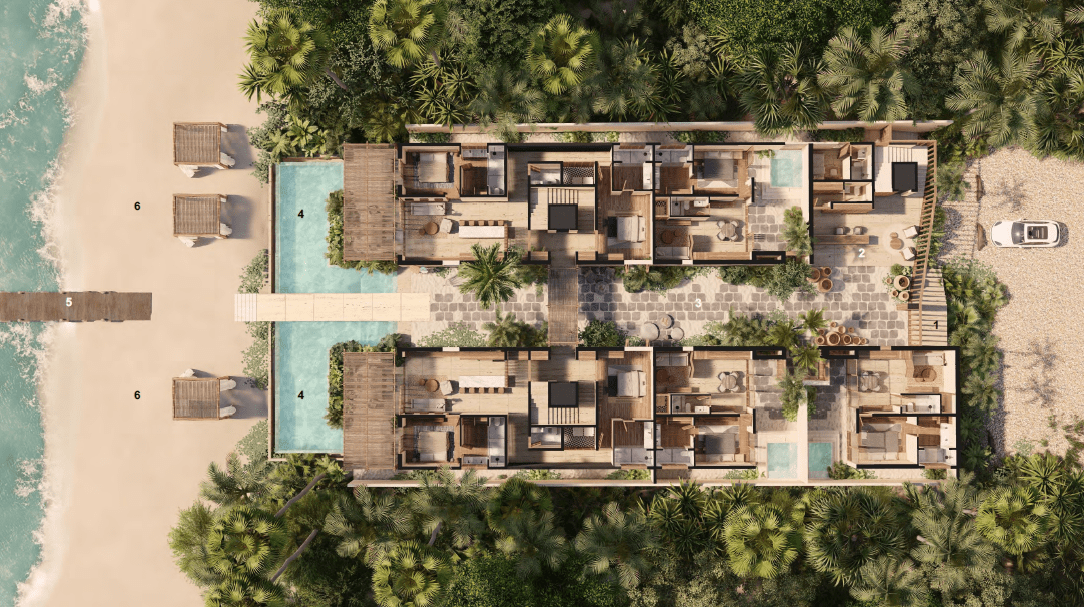 Designed around a central patio, the layout maximizes natural light and provides breathtaking views of both the Caribbean Sea and the Mayan jungle.